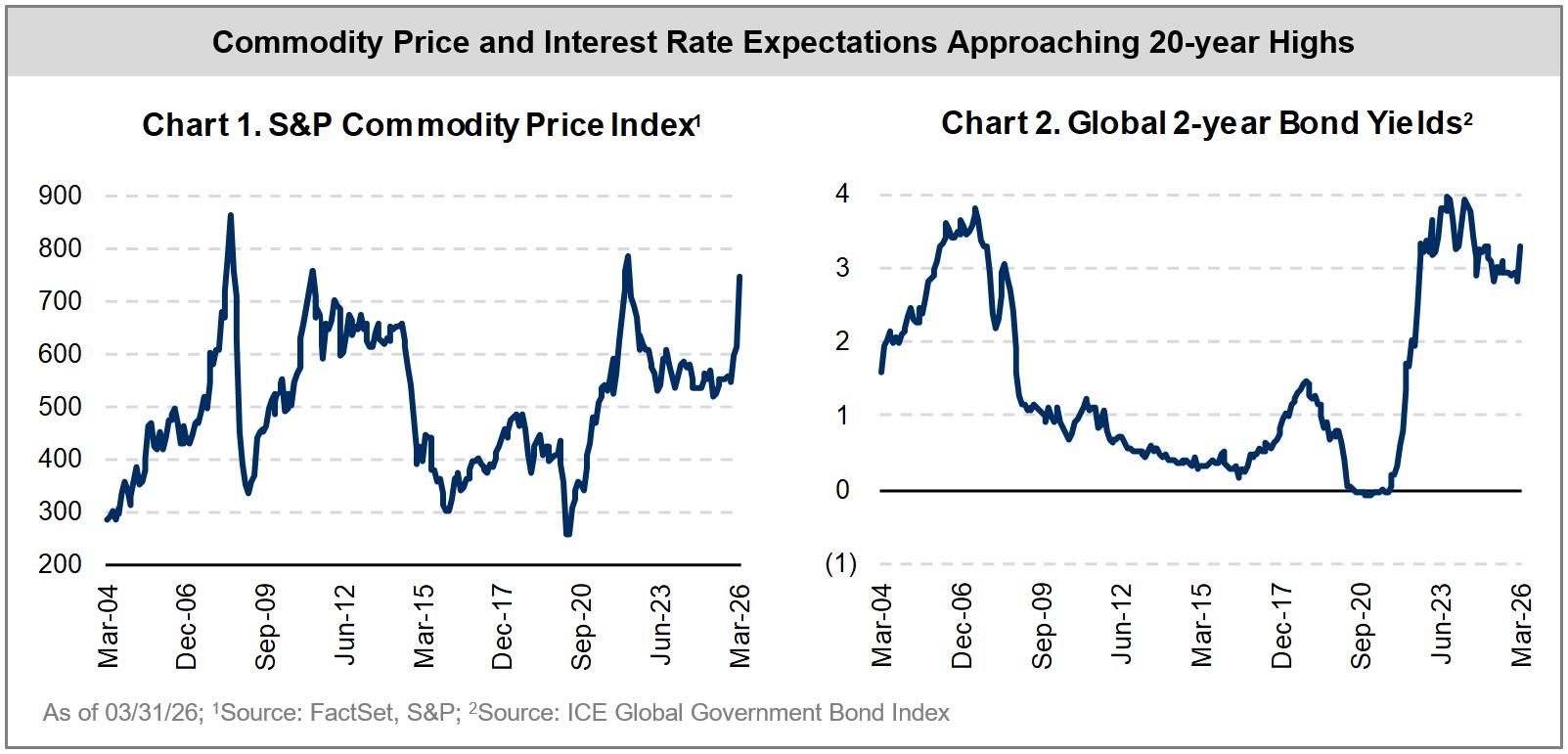 Outside the “blue sky” scenario, the most likely outcome is some combination of slower growth and higher inflation relative to pre-conflict conditions. Never has so much hinged on a “tweet” or a “Truth.” The extent to which global economic growth suffers depends on many factors, some of which include where oil prices settle, policy responses, the pace of deglobalization driven by supply chain restructuring, and tech-related productivity gains.
