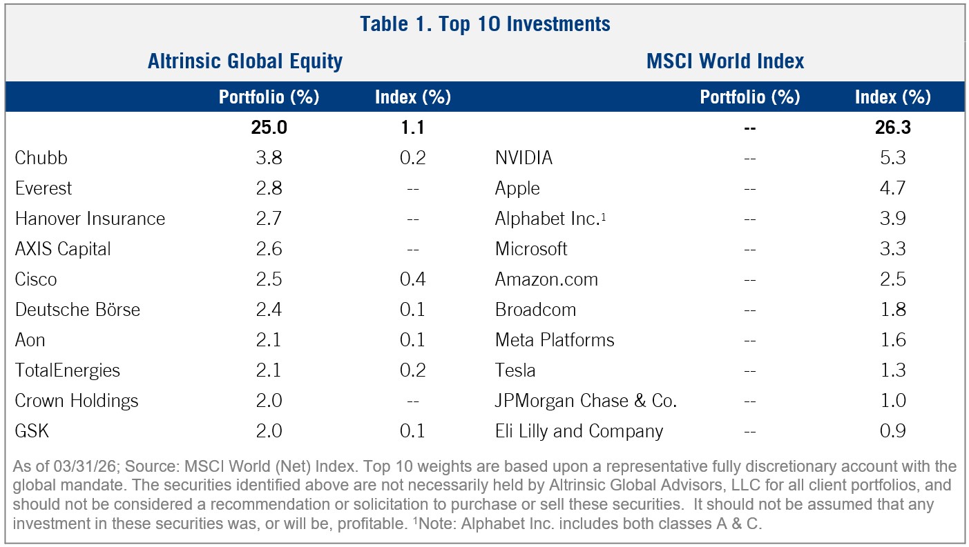 The portfolio is well diversified and meaningfully different from crowded indices, exhibits solid valuation and quality underpinnings, and is positioned to capitalize on volatility that surfaces among the continuing geopolitical, economic, and AI-related uncertainty. A summary of our largest investments is provided in Table 1.