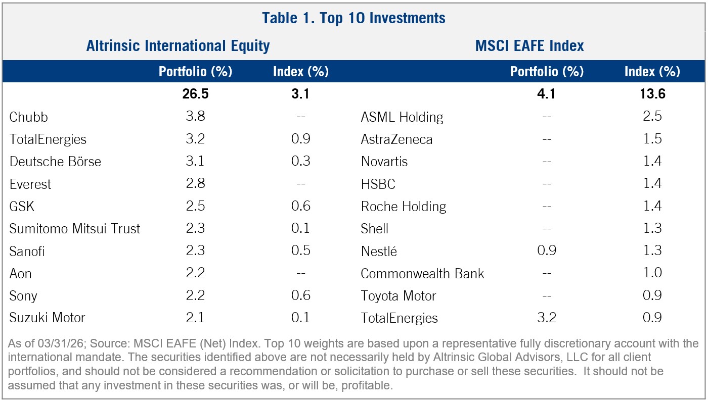 The portfolio is well diversified and meaningfully different from crowded indices, exhibits solid valuation and quality underpinnings, and is positioned to capitalize on volatility that surfaces among the continuing geopolitical, economic, and AI-related uncertainty. A summary of our largest investments is provided in Table 1.