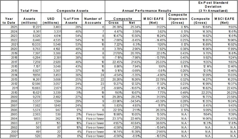 AI-driven innovation is reshaping industries and creating remarkable long-term potential. At the same time, the pace of investment and elevated expectations around the AI theme, paired with the implications of rising long-term interest rates, introduce meaningful risk for markets. Against this backdrop, many high-quality international businesses with durable earnings, strong balance sheets, and reasonable valuations remain underappreciated. Our focus on fundamentals and margin of safety helps us to uncover opportunities beyond crowded parts of the market. We believe our disciplined approach and positioning – while challenging to be different now – provide a strong foundation for long‑term value creation and an attractive client experience through various market environments.
